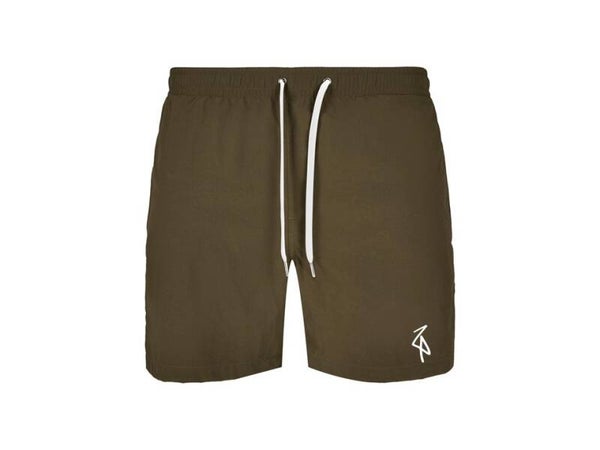 Classic zwembroek met geborduurde witte stork op de linkerbroekspijp. Deze zwemshort heeft twee zijzakken en een kontzak met rits.