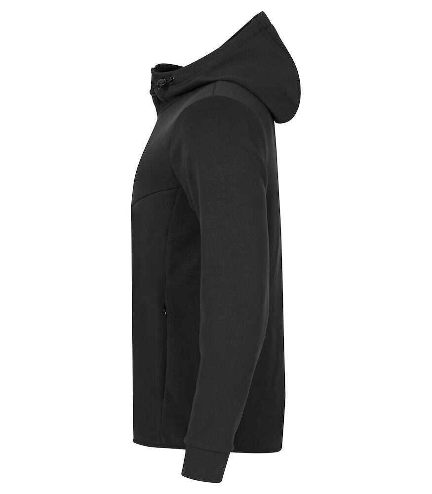 Voorzien van twee verborgen zijzakken met rits, twee binnenzakken, manchetten van shellstof en elastische tape in de boord. De capuchon is te verstellen met het trekkoord.